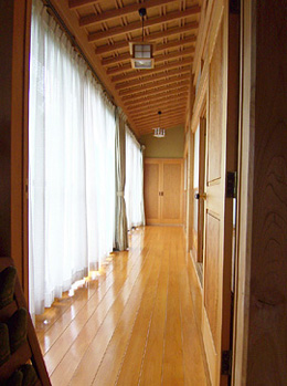 ホールより前廊下を見る。